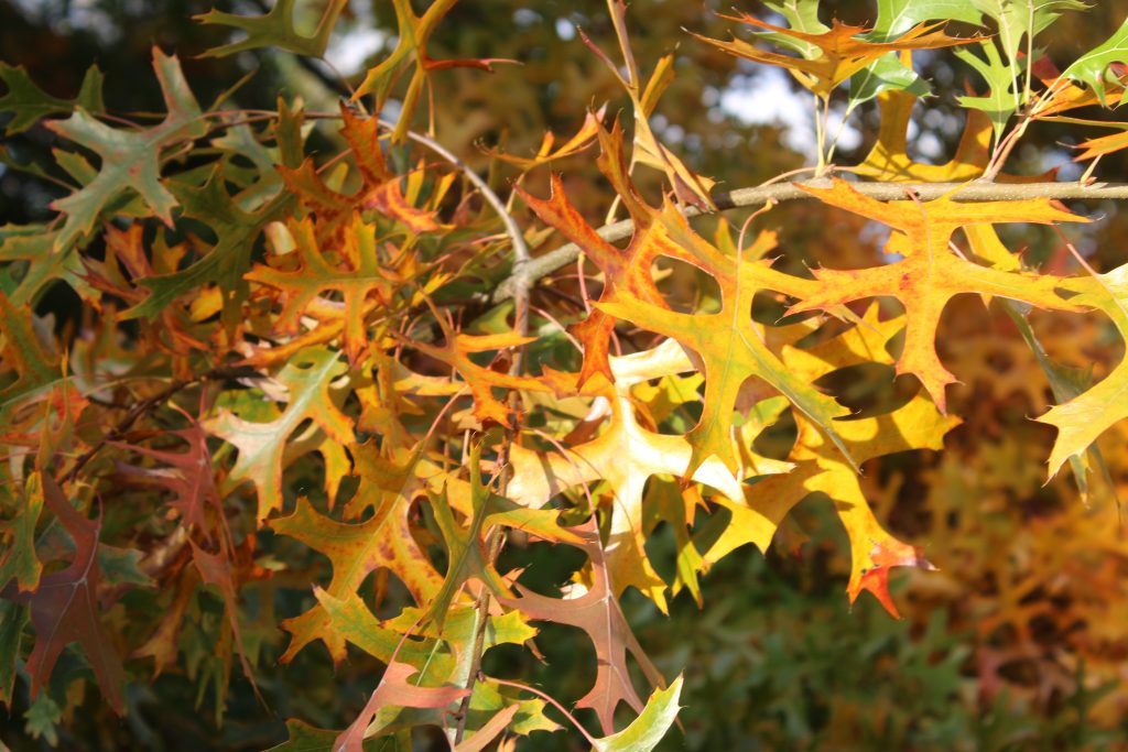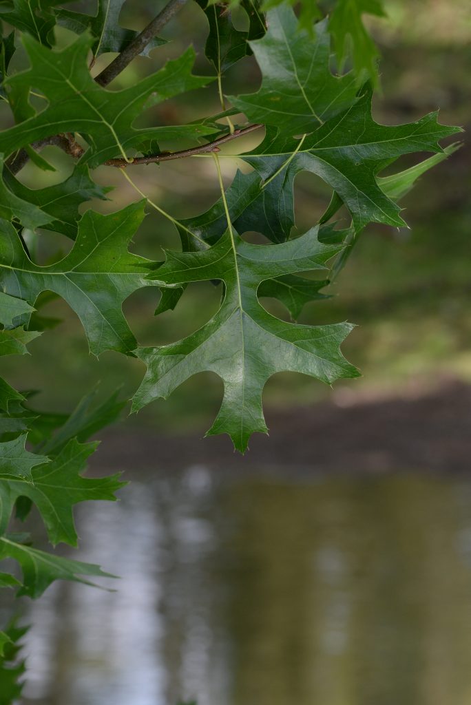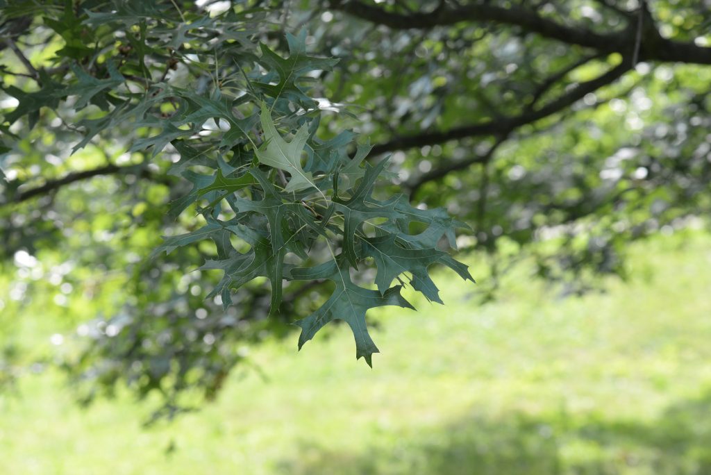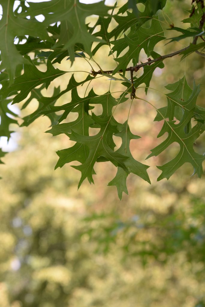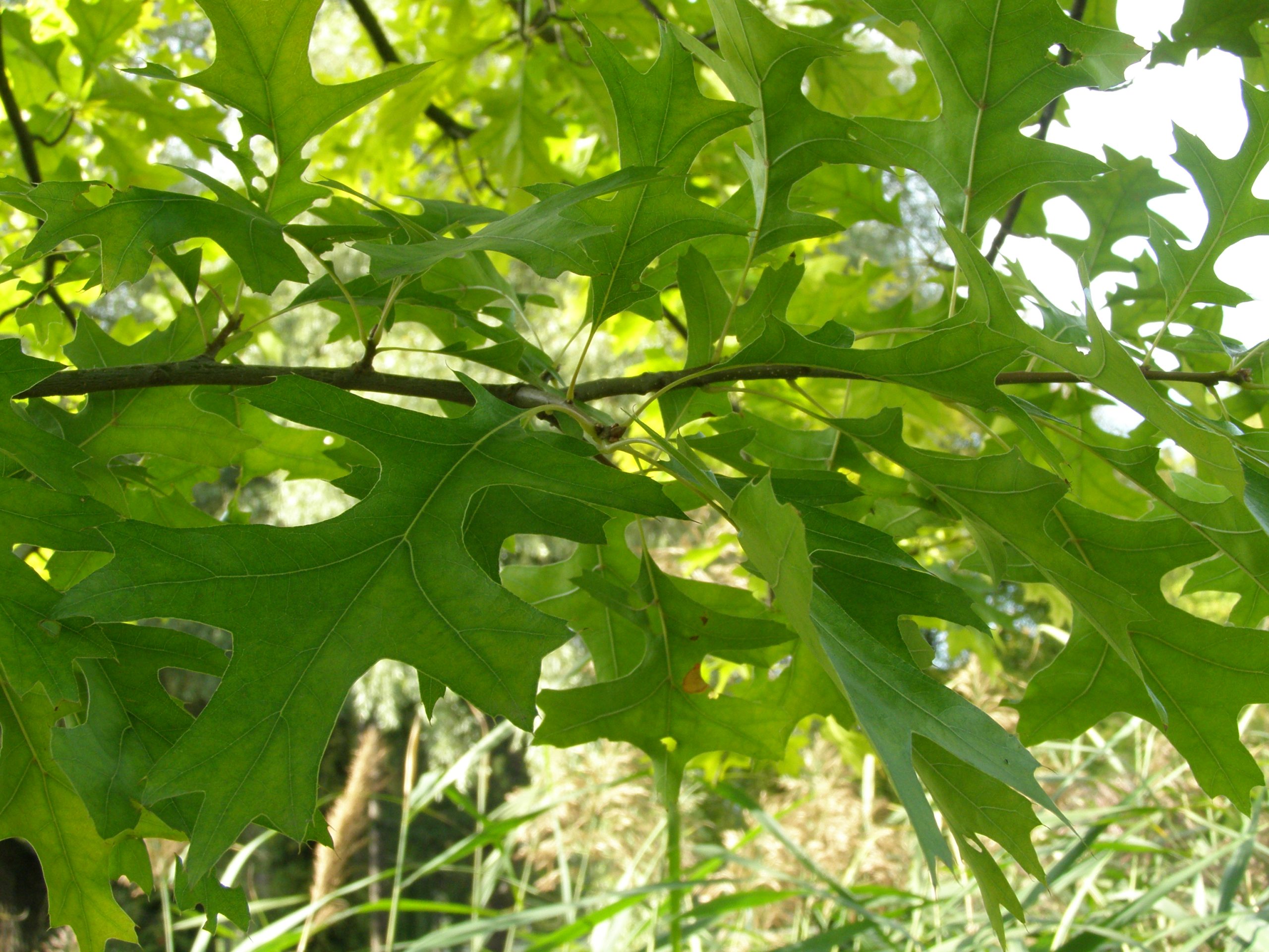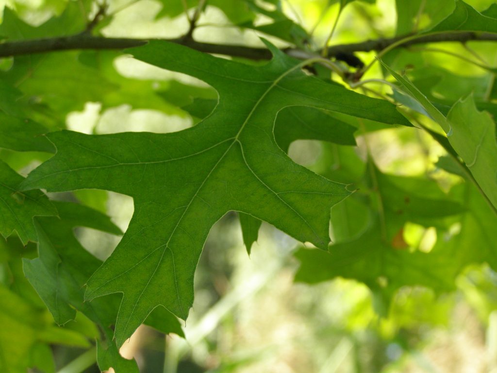 List: Eliptické listy jsou hluboce laločnatě vykrojené, z obou stran lesklé, na rubu mají rezavé chlupy podél hlavní žilky. Jejich barva se na podzim mění ze svěže zelené do červené až hnědé.