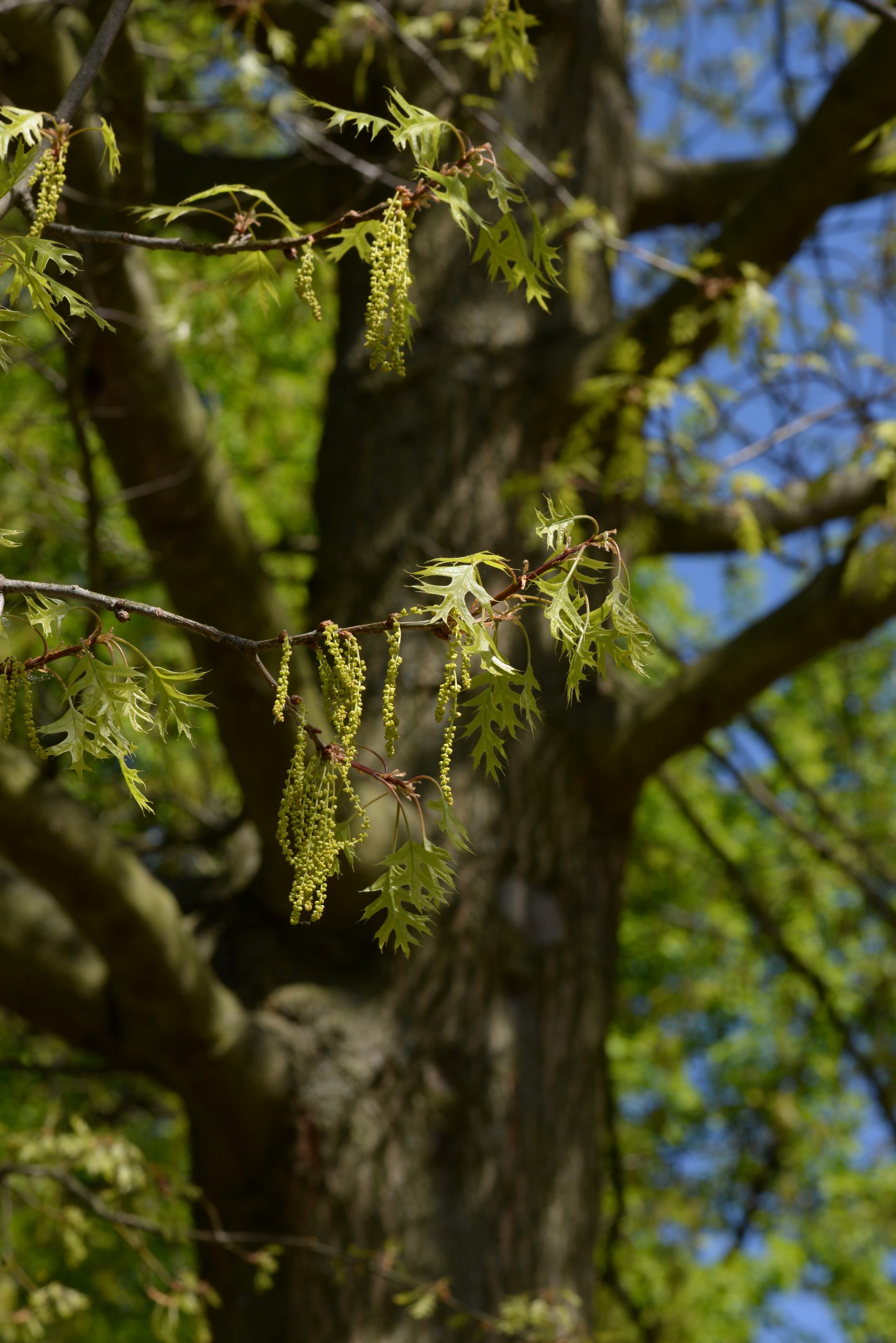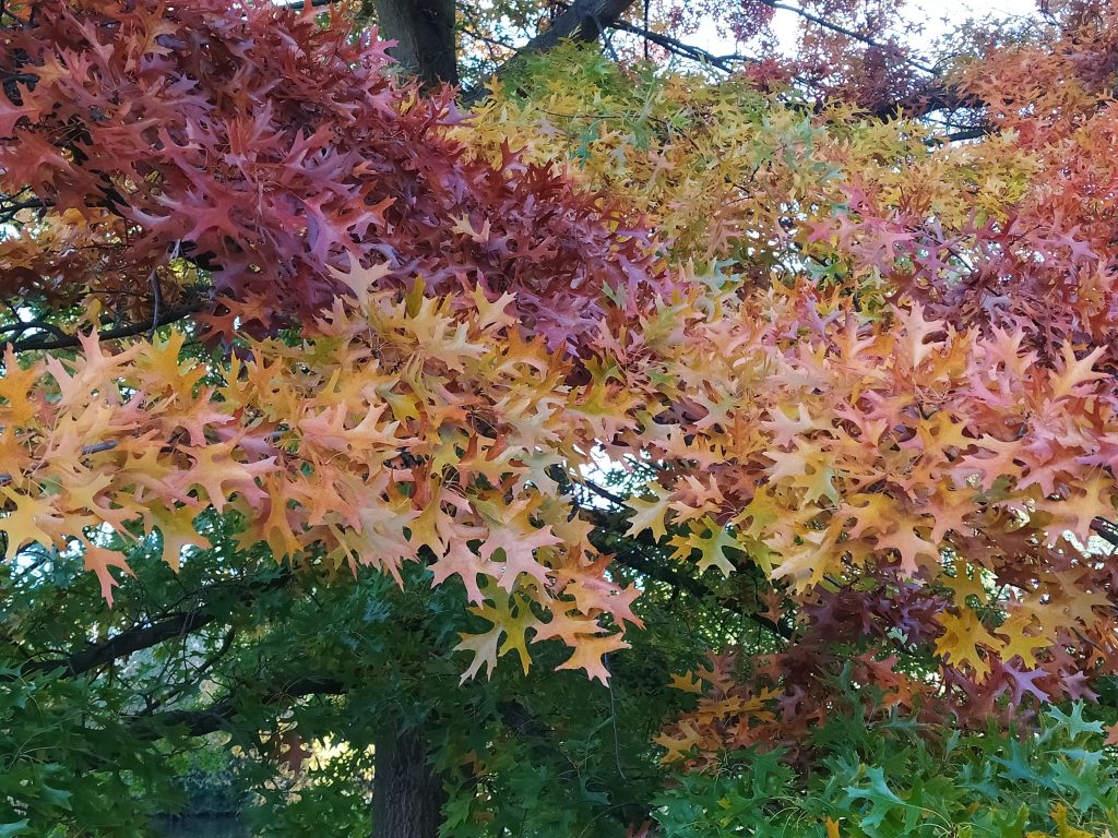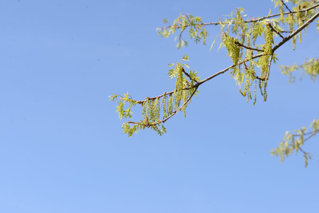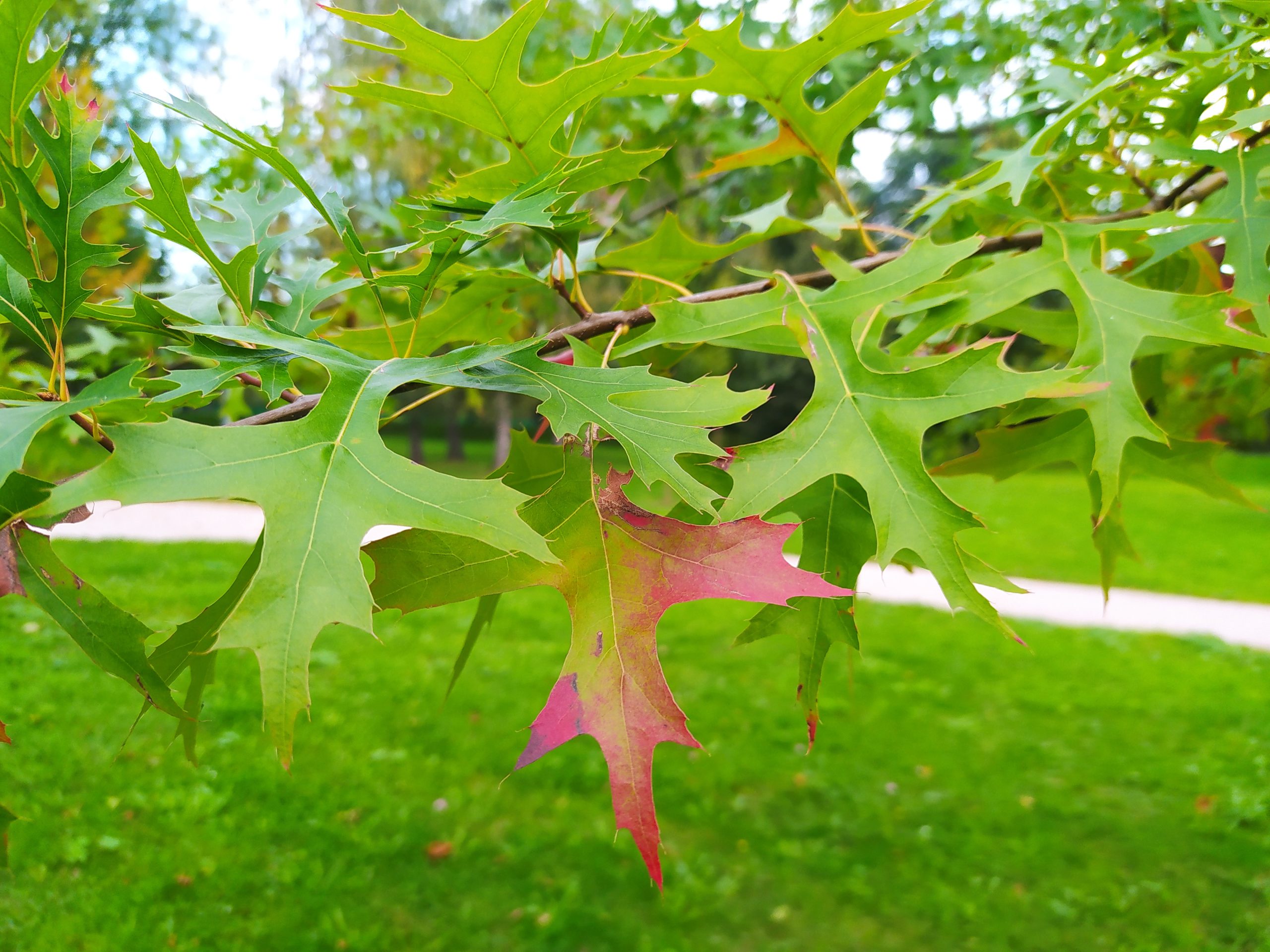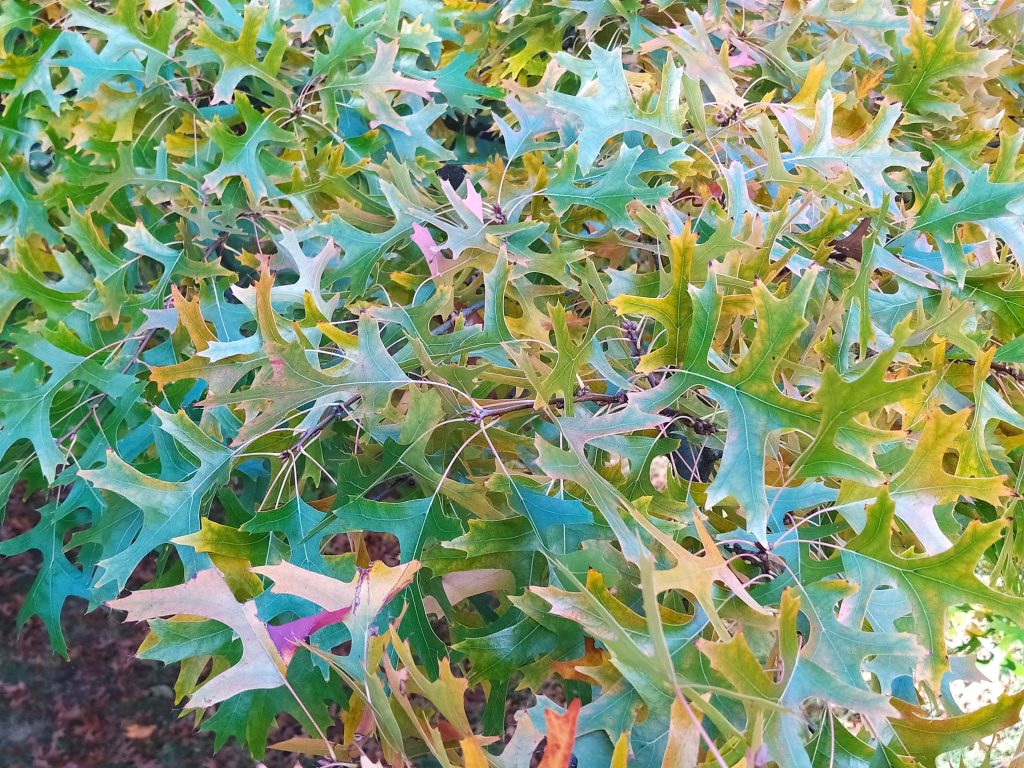 List: Eliptické listy jsou hluboce laločnatě vykrojené, z obou stran lesklé, na rubu mají rezavé chlupy podél hlavní žilky. Jejich barva se na podzim mění ze svěže zelené do červené až hnědé.