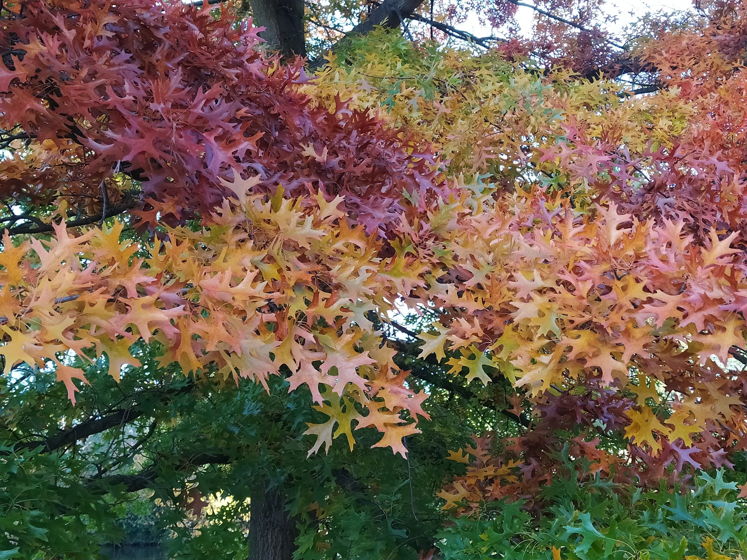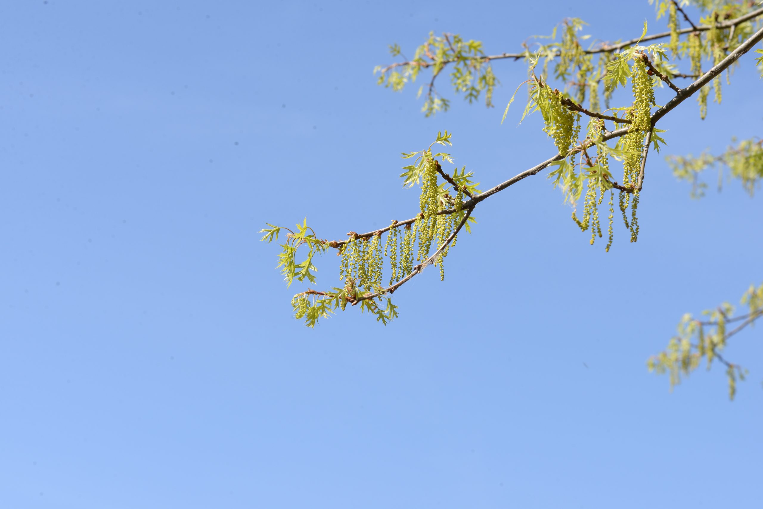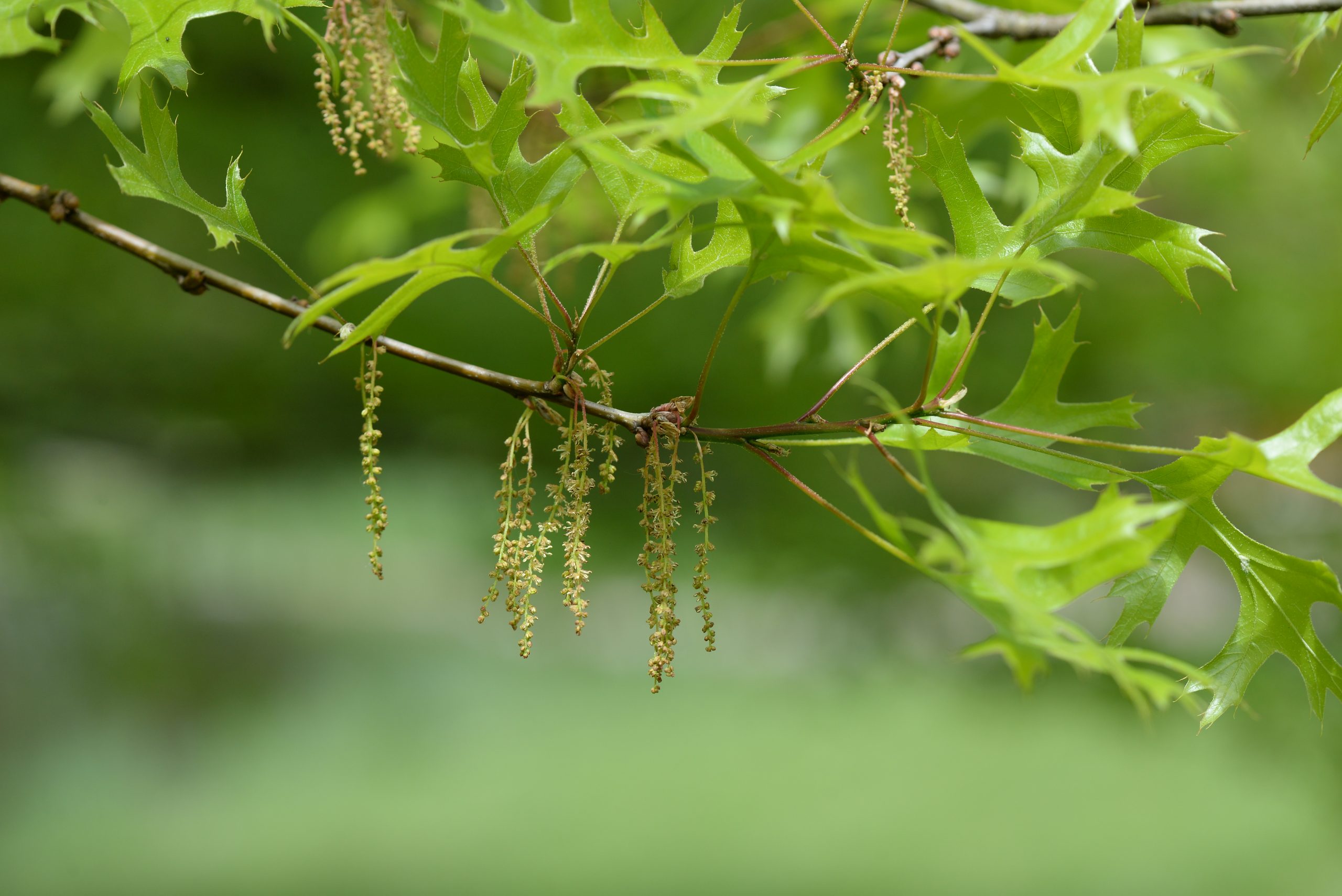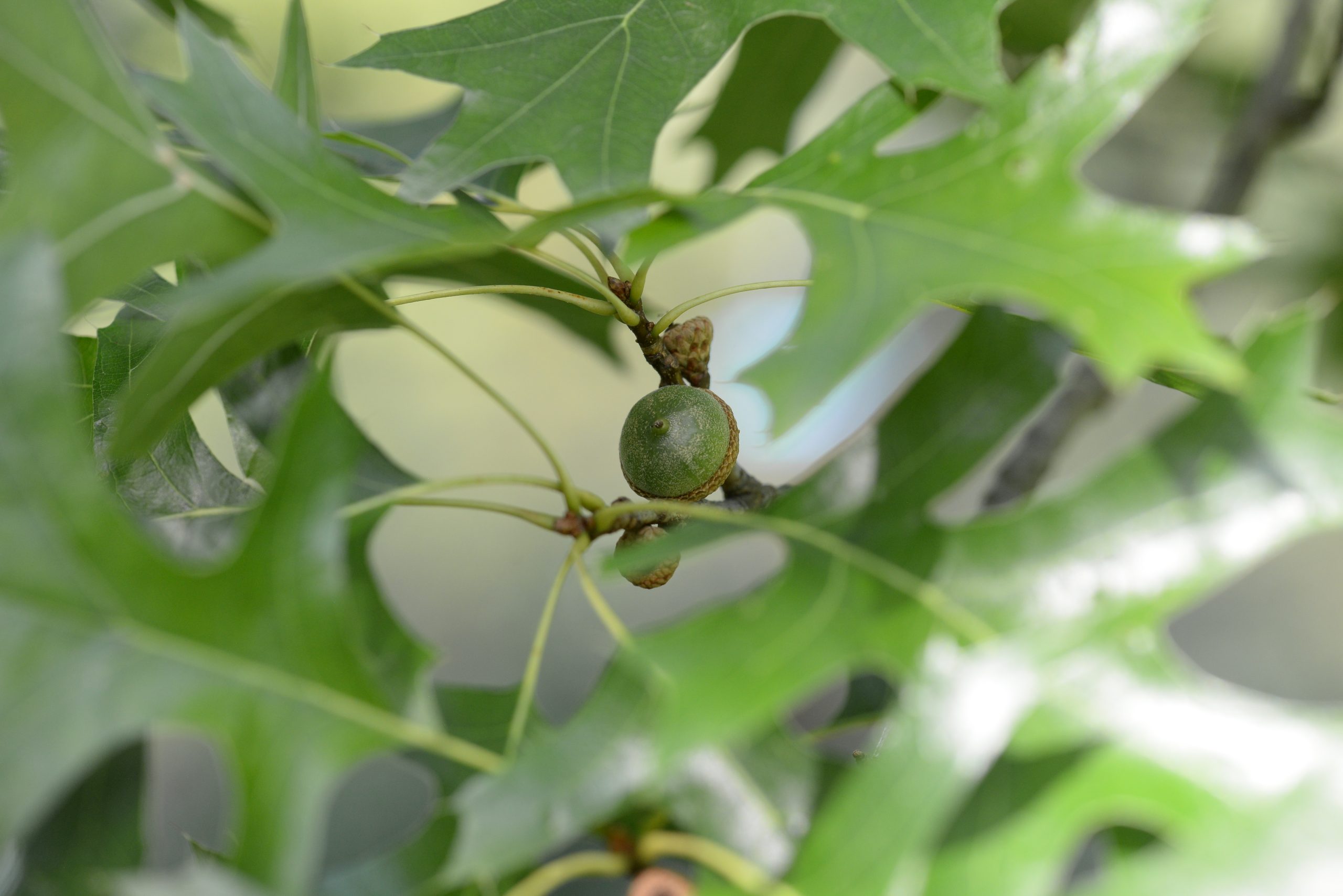 List: Eliptické listy jsou hluboce laločnatě vykrojené, z obou stran lesklé, na rubu mají rezavé chlupy podél hlavní žilky. Jejich barva se na podzim mění ze svěže zelené do červené až hnědé.