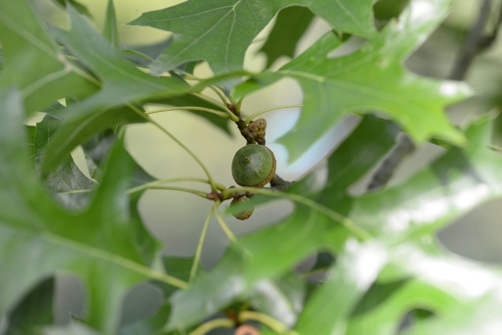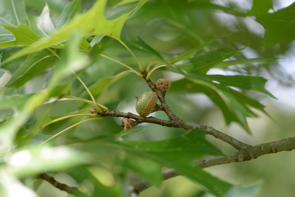 Květ, plod: Plodem jsou žaludy uzavřené v ploché číšce.