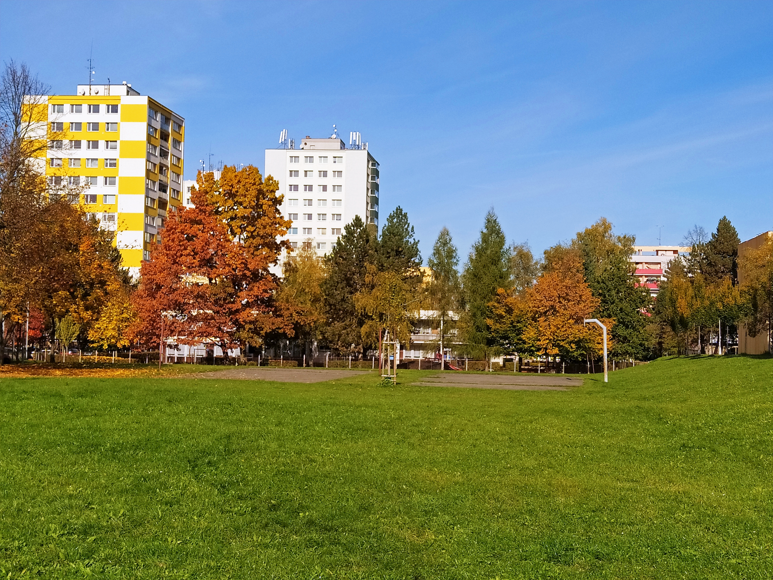 Moravské Předměstí is a part of Hradec Králové situated south of the city centre. It is located partly in the cadastral territory of the local district called Nový Hradec Králové and partly in the cadastral territory of the local district called Třebeš. At the beginning of the 20th century, there was only a meadow on the site of today’s housing estate; the first houses and blocks of flats were built in 1908. A design for the building development of the entire area was made in 1919. However, no steps to implement this design were taken until the end of the 1950s. In 1960 the design was revived by architects Břetislav Petránek and Jan Zídka. In the period of 1967–1968, a national urban planning competition was announced calling for designs of Moravské Předměstí. A detailed master plan was drawn up between 1969 and 1971 based both on the winning design and on new requirements for civic amenities. The requirement for more apartments prompted the architects to make the housing estate denser with buildings and to reduce the green areas during the project processing.