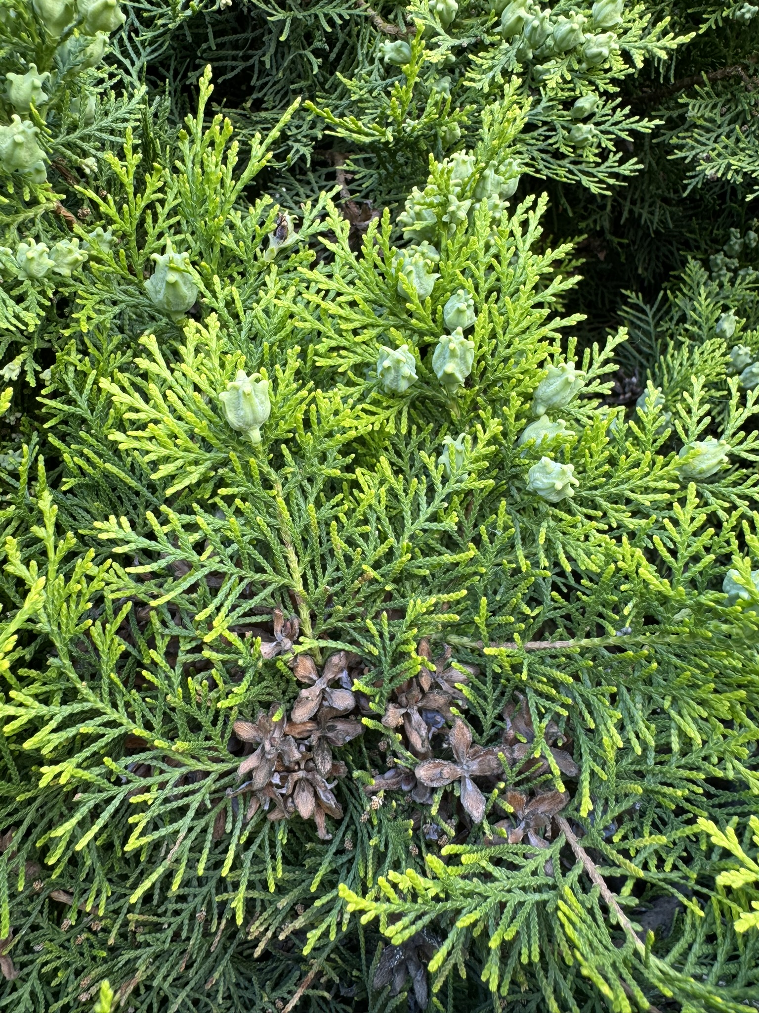 Leaf: Young leaves have the form of short needles; older leaves are scaly. Scaly leaves predominate on mature shrubs.