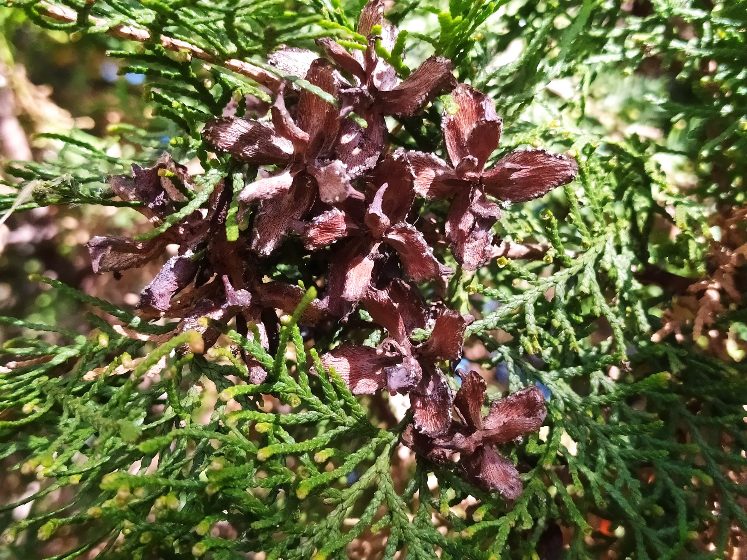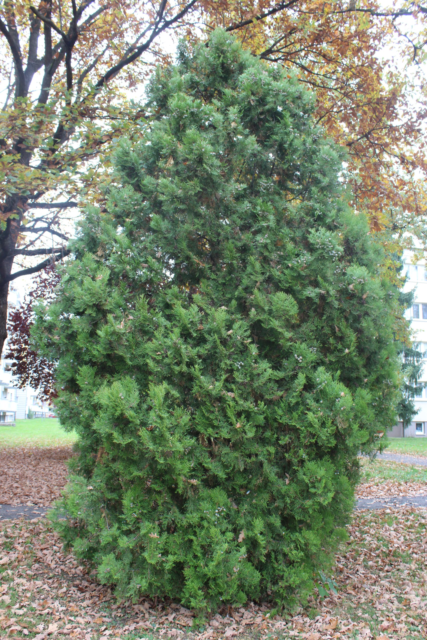 Habitus: An evergreen shrub is up to 10 metres tall with a conical, densely branched crown. The bark is reddish-brown and peels off in thin longitudinal strips.