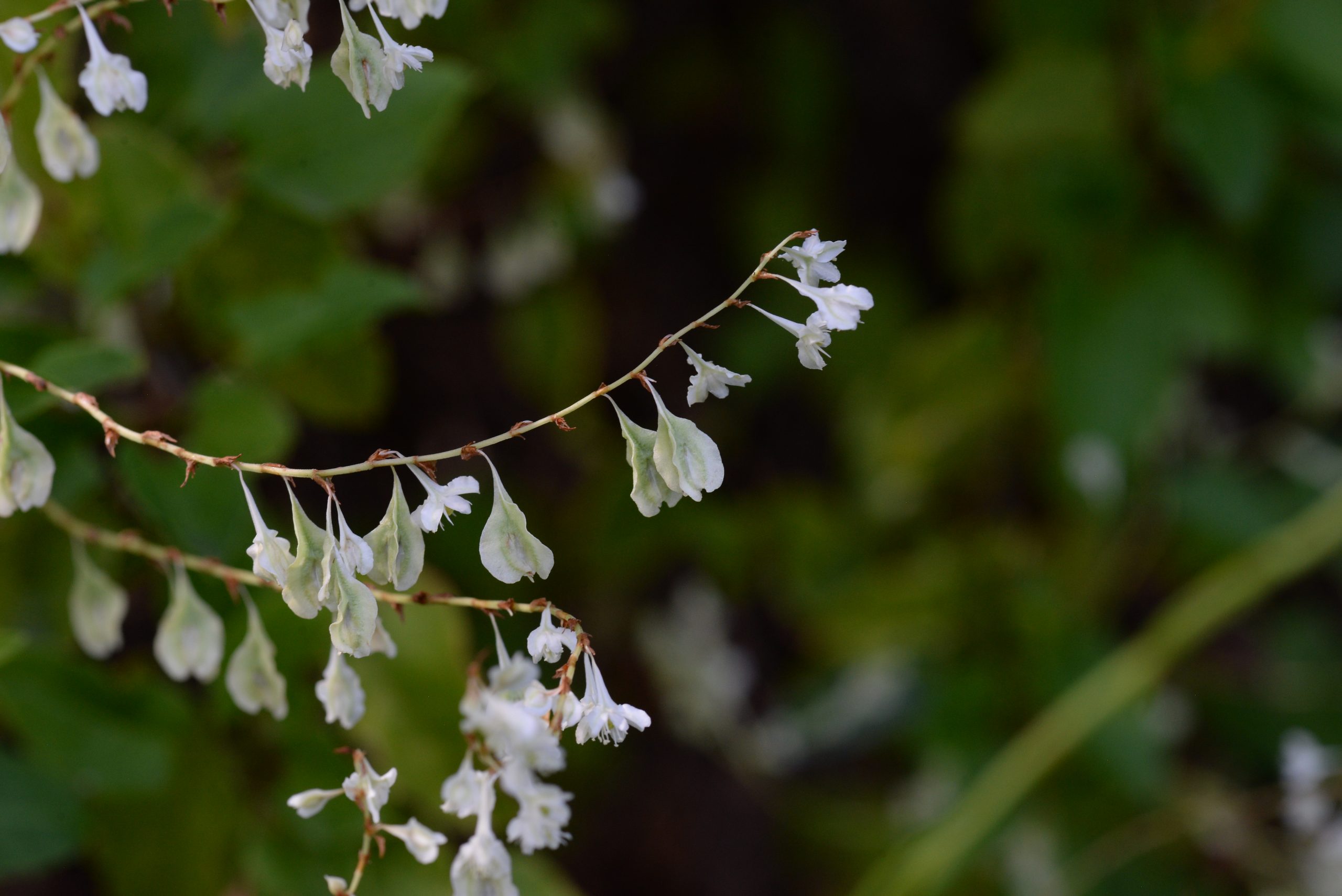 Bloom, fruit: It blooms from June to October. White, sometimes slightly pink blossoms grow in a 50 centimetres long panicle. They consist of 5 petals, which are fused at the base. The fruits are 4 millimetres long shiny black achenes hidden in an exaggerated, persistent inflorescence.