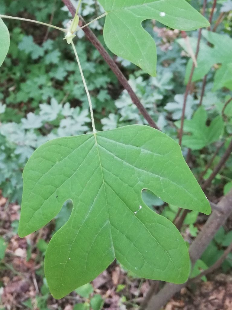 Leaf: Light green leaves are alternately arranged, with a long petiole and a square blade with 4–6 lobes.