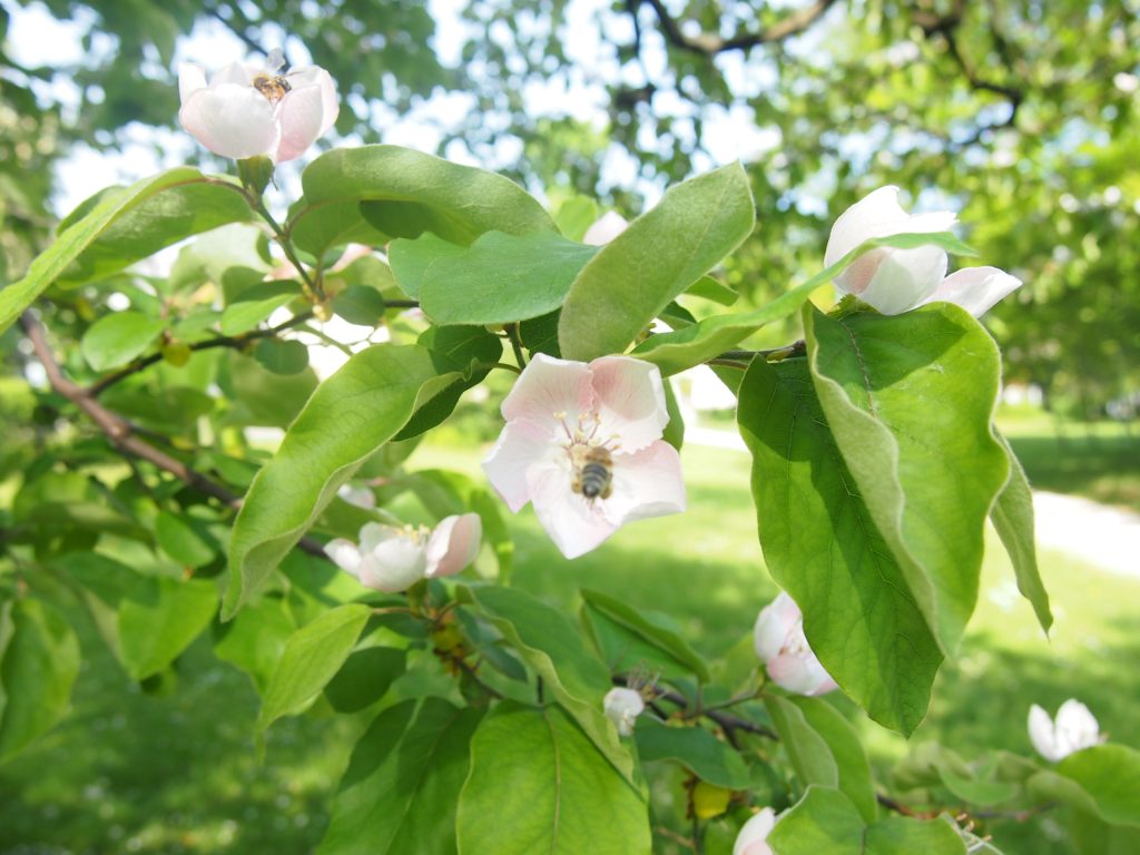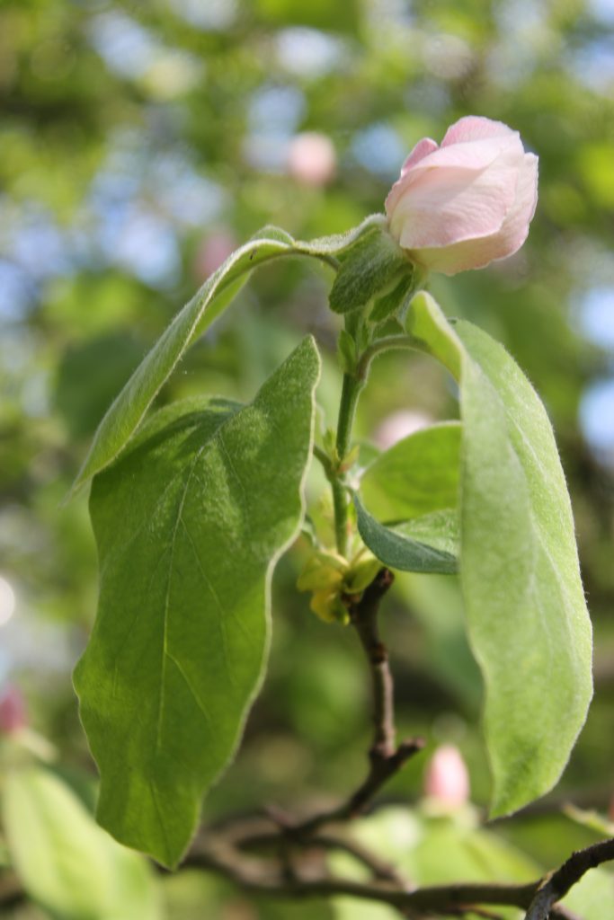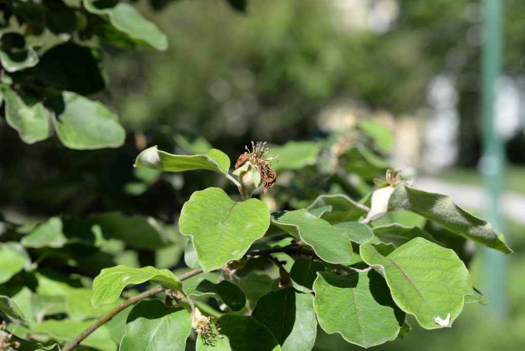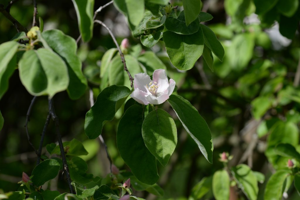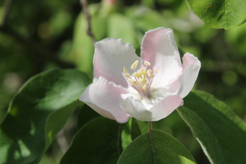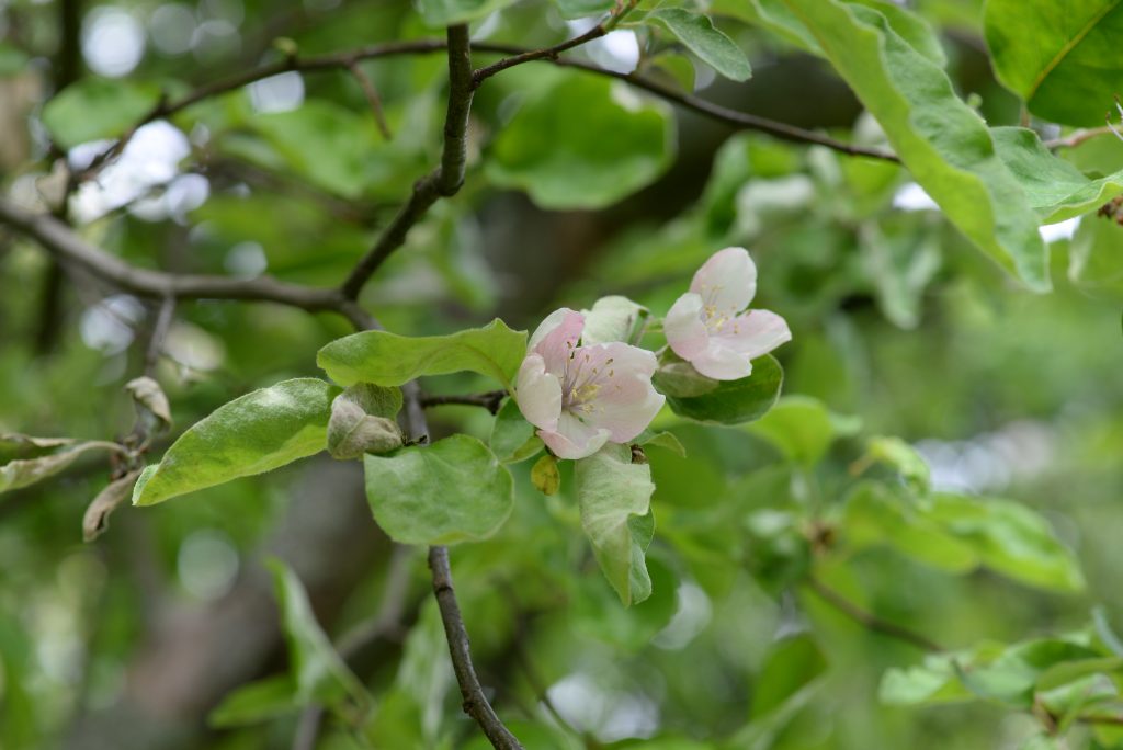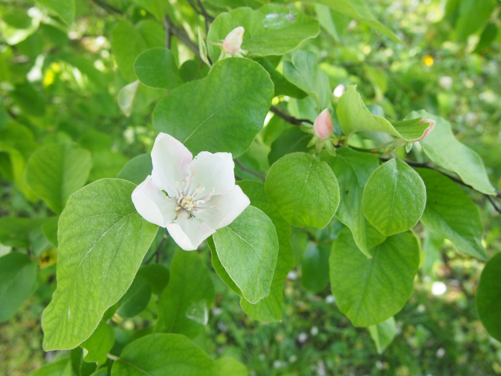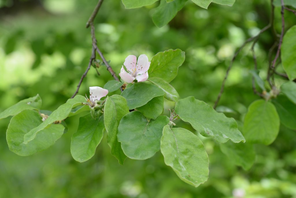 Květ, plod: Kvete od května do června bílými až narůžovělými květy. Plodem je plstnatá zeleno-žlutá malvice (kdoule) tvarem podobná jablku.