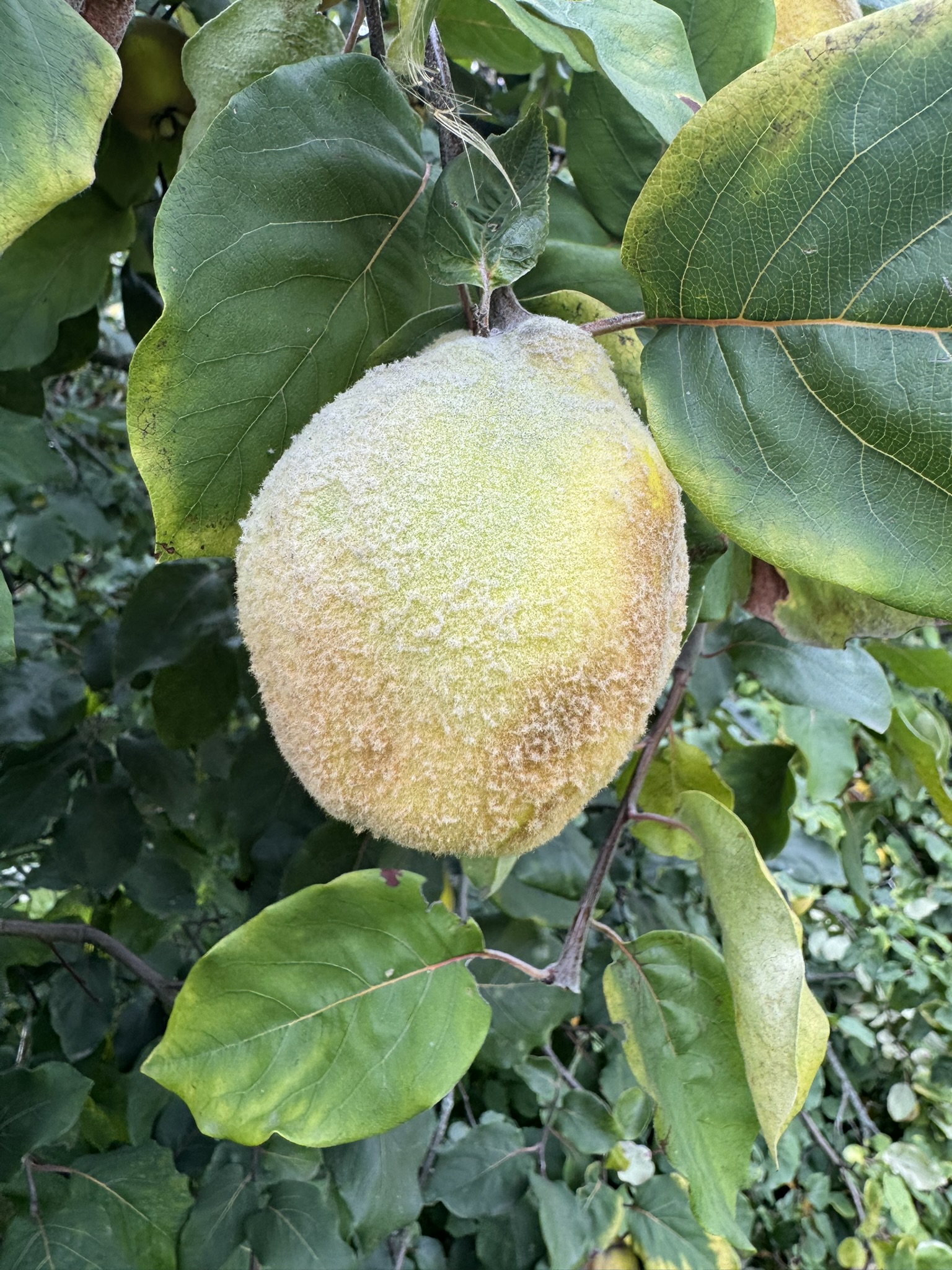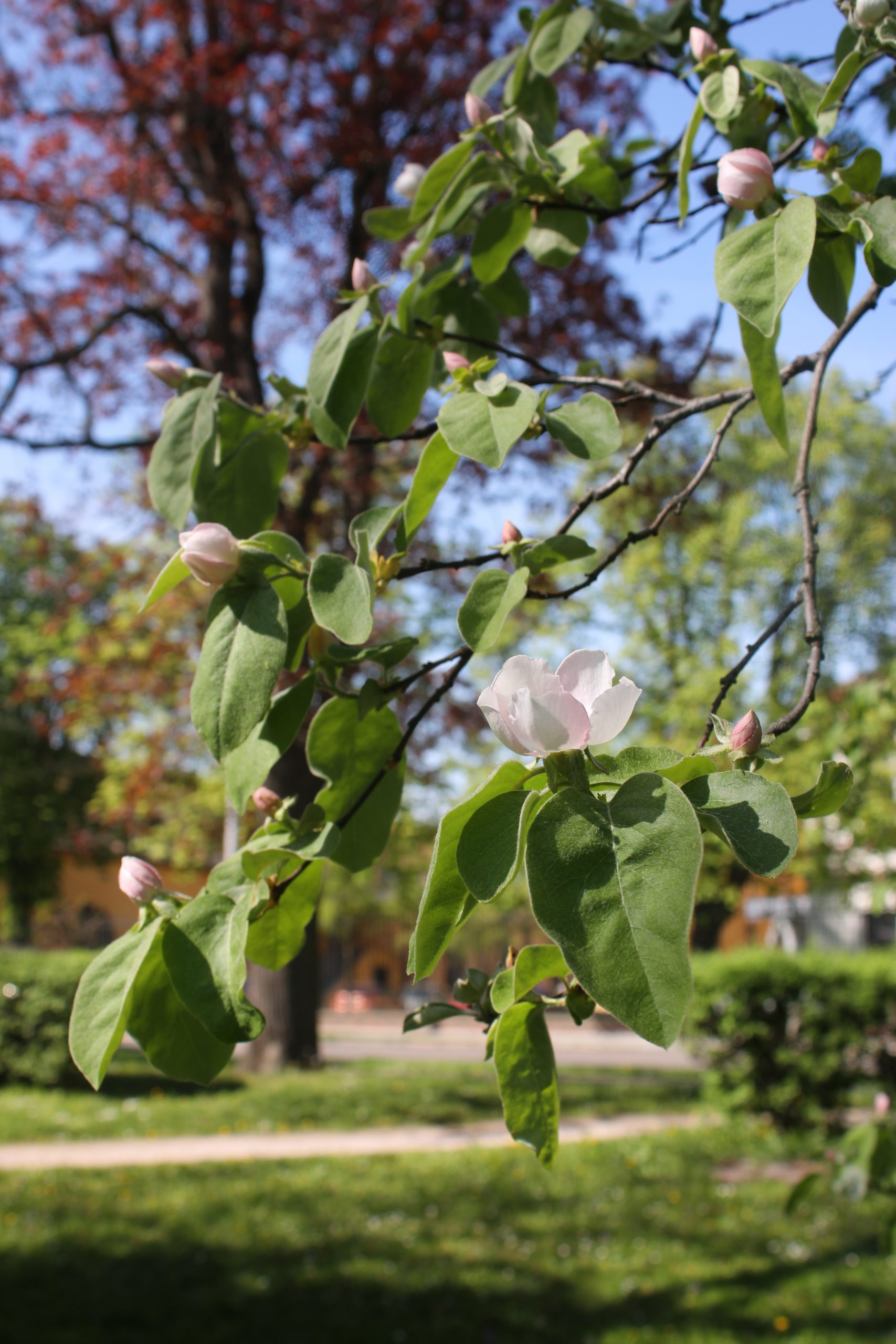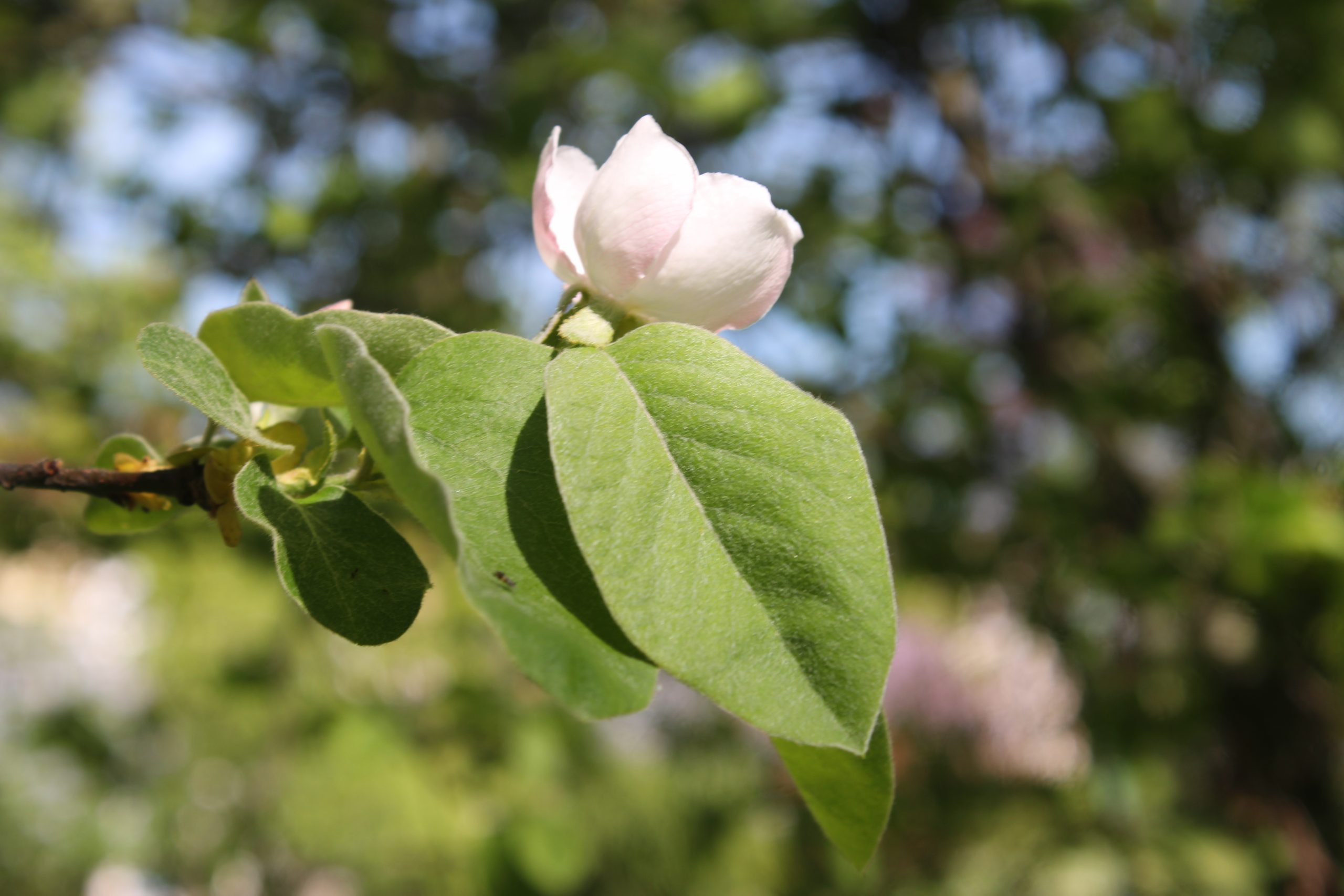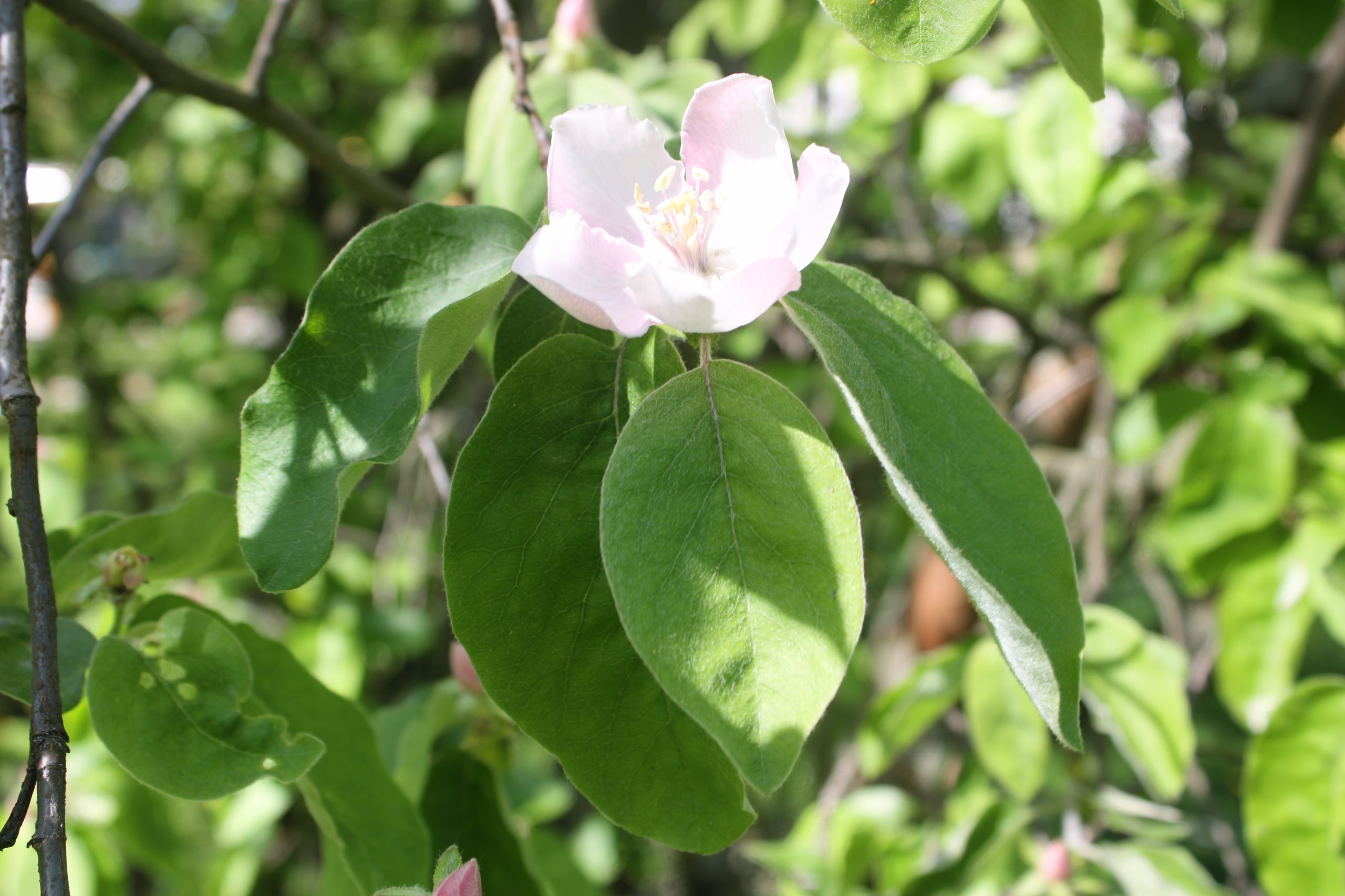 Květ, plod: Kvete od května do června bílými až narůžovělými květy. Plodem je plstnatá zeleno-žlutá malvice (kdoule) tvarem podobná jablku.