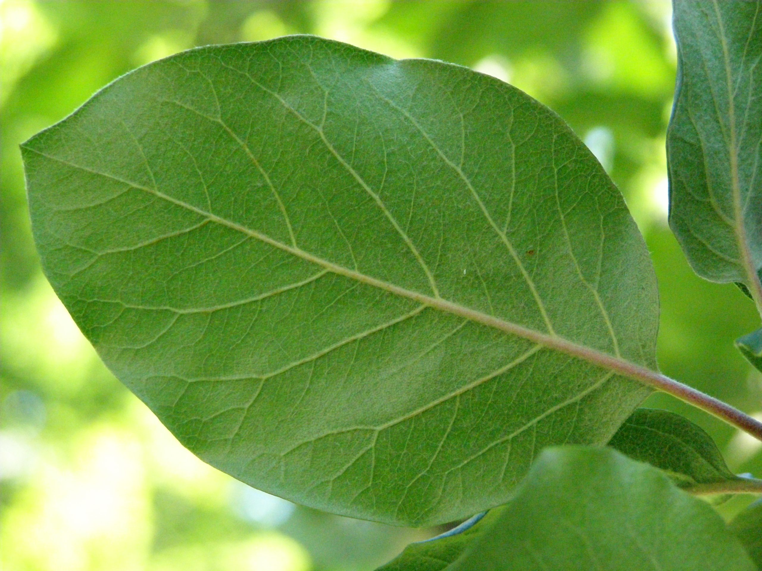 List: Listy vyrůstají na větvích střídavě, mají široce vejčitou čepel se špičkou. Na vrchní straně jsou tmavě zelené, zespod světlejší a plstnaté.