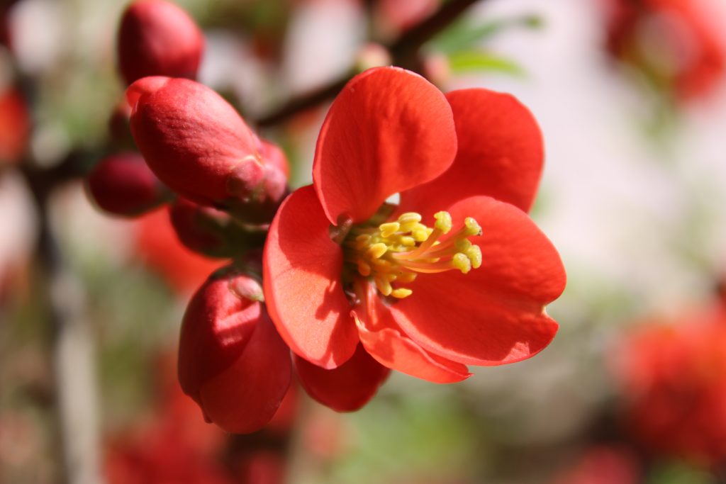 Květ, plod: Kvete v dubnu až květnu. Oranžovo-červené květy vyrůstají po 1–4 ve svazečcích. Plodem je 5 cm dlouhá a vonná malvice. Nezralá je zelená a bíle kropenatá, při dozrávání žloutne.