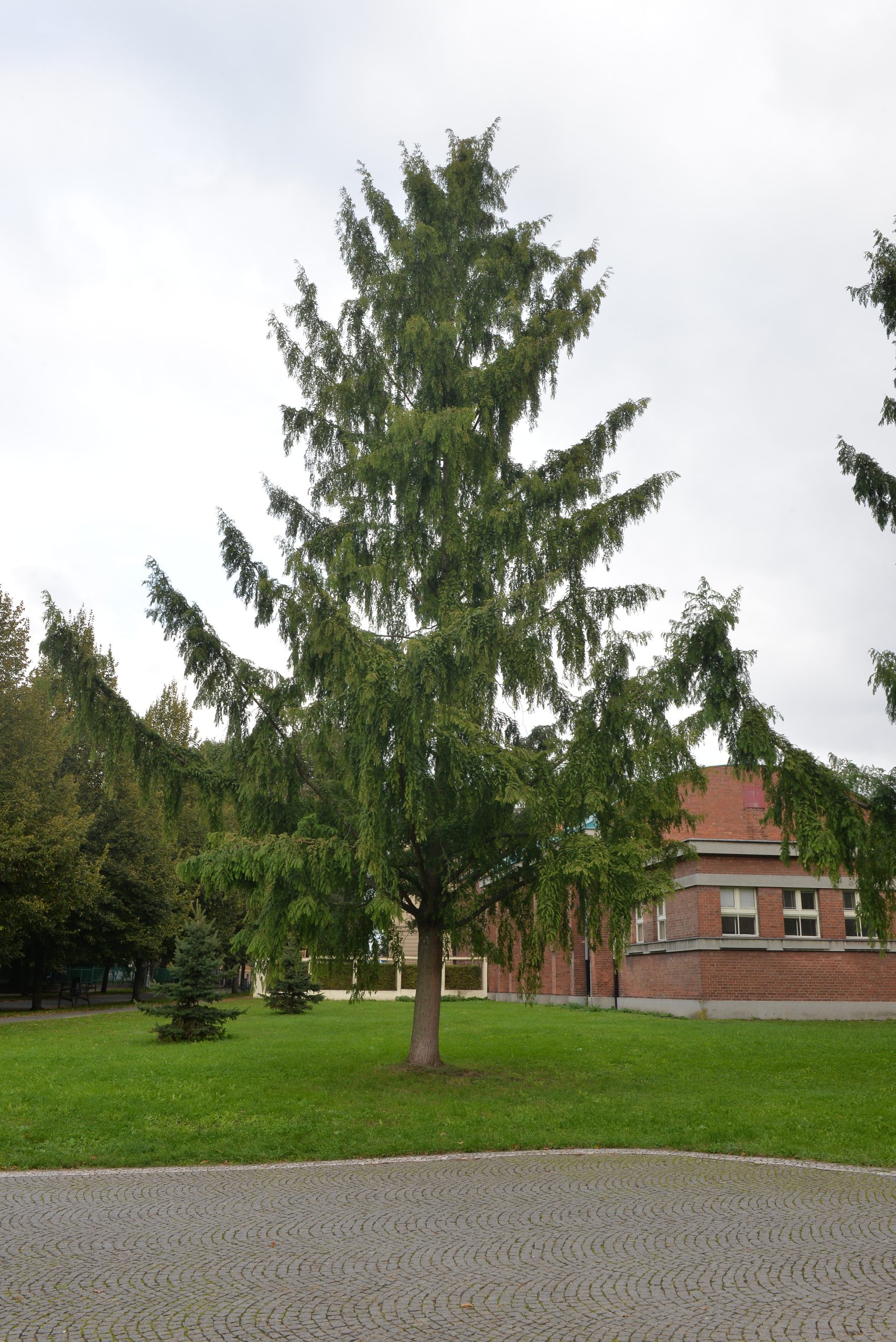 Habitus: Opadavý strom s obvyklou výškou 15 m. V oblasti svého přirozeného výskytu může dosáhnout výšky až 35 m. Větve vyrůstají již ve spodní části kmene. Koruna má kuželovitý tvar. Kůra kmene je světle hnědá a odlupuje se v pruzích.