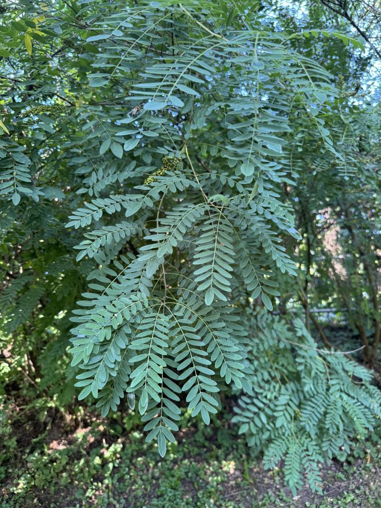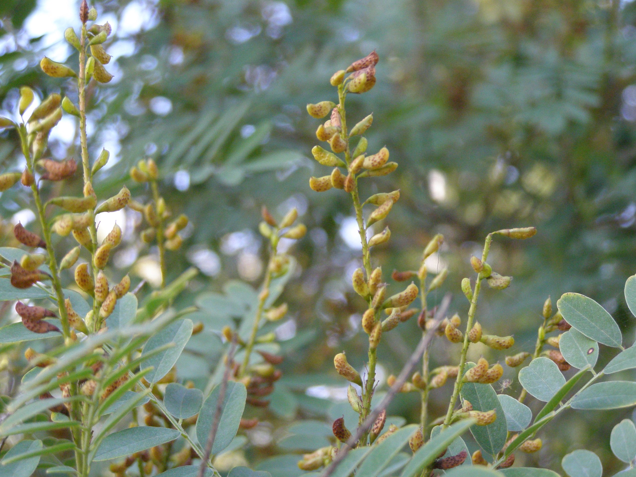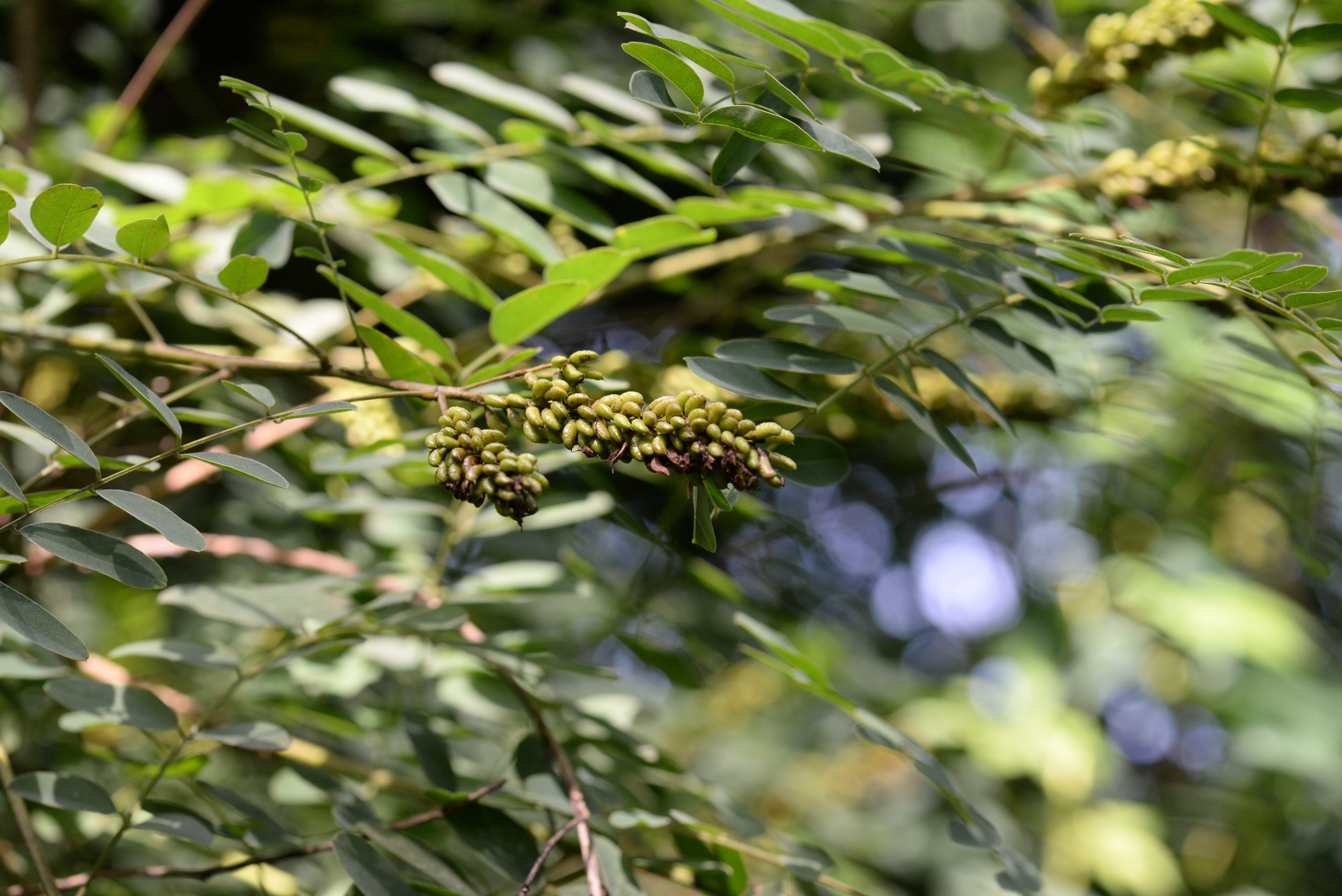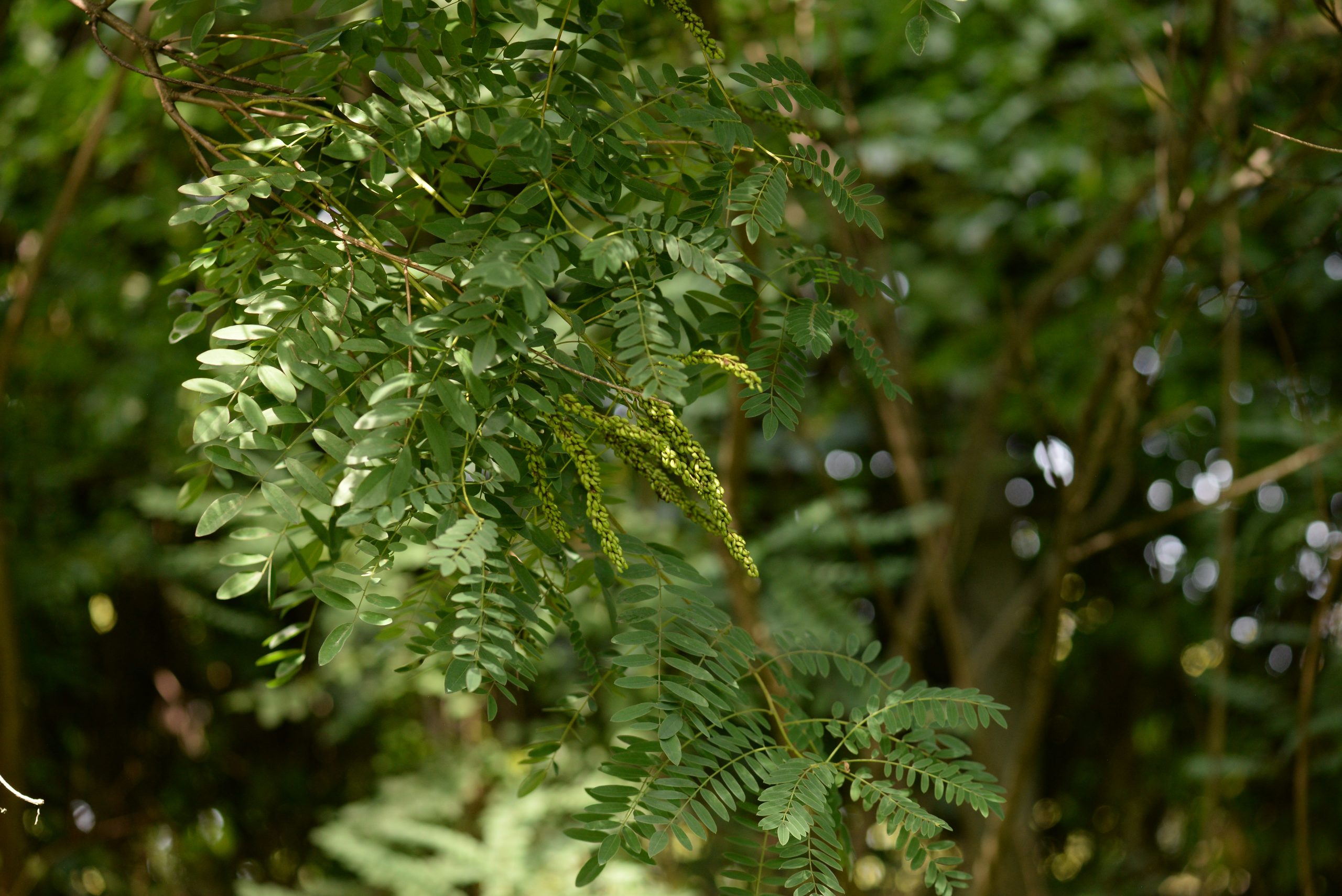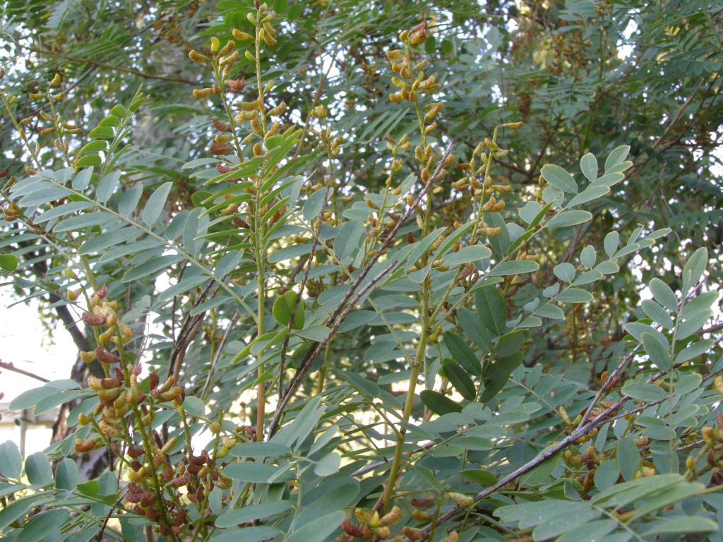 List: Lichozpeřené listy jsou až 30 cm dlouhé a skládají se z 5–12 párů celokrajných lístků.