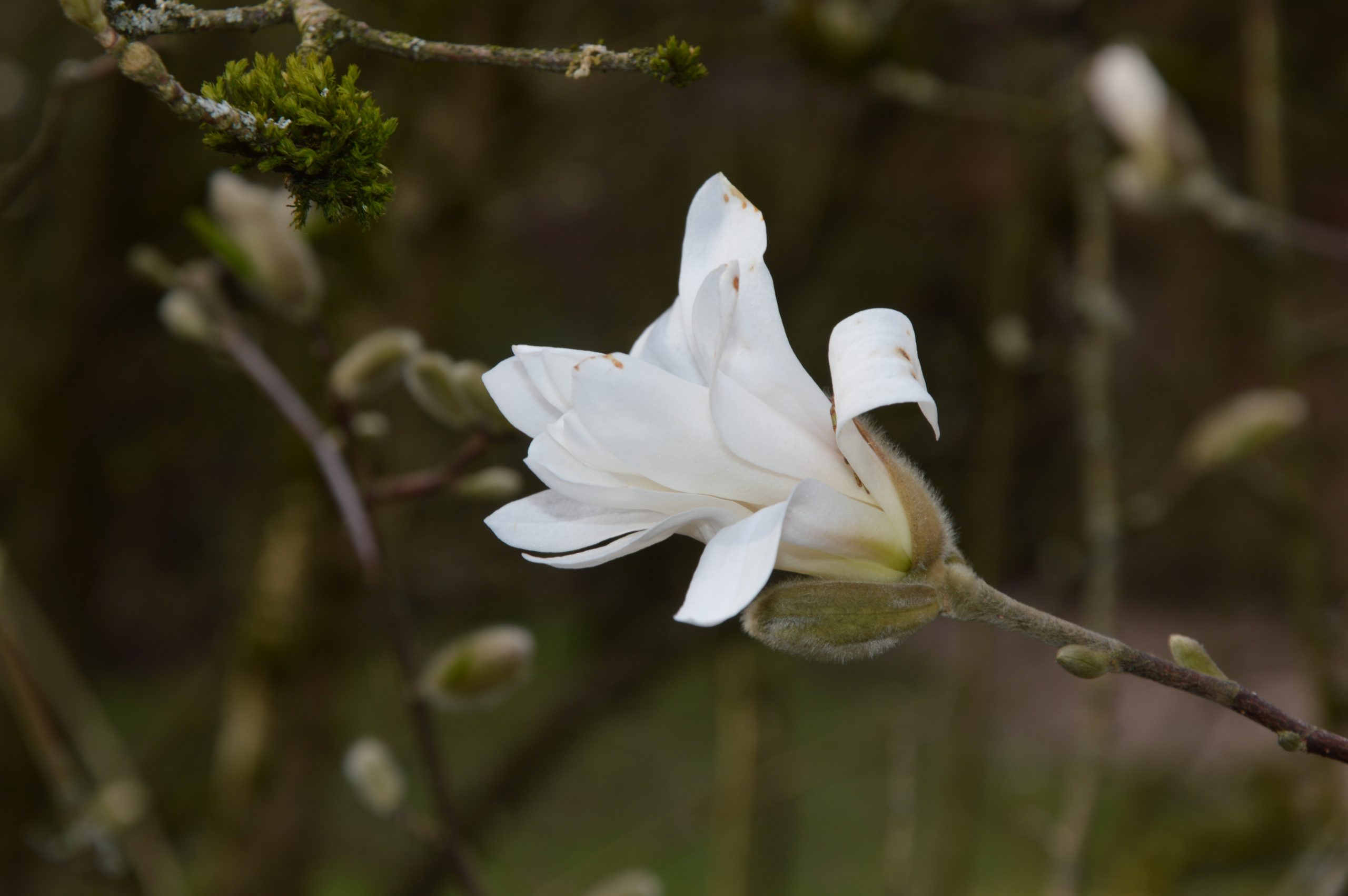 Habitus: Nejkompaktněji rostoucí šácholan – jedná se o keř, vzácně strom dorůstající výšky okolo 2 m. Letorosty (mladé ještě nedřevnaté přírůstky větví) jsou hustě chlupaté.
