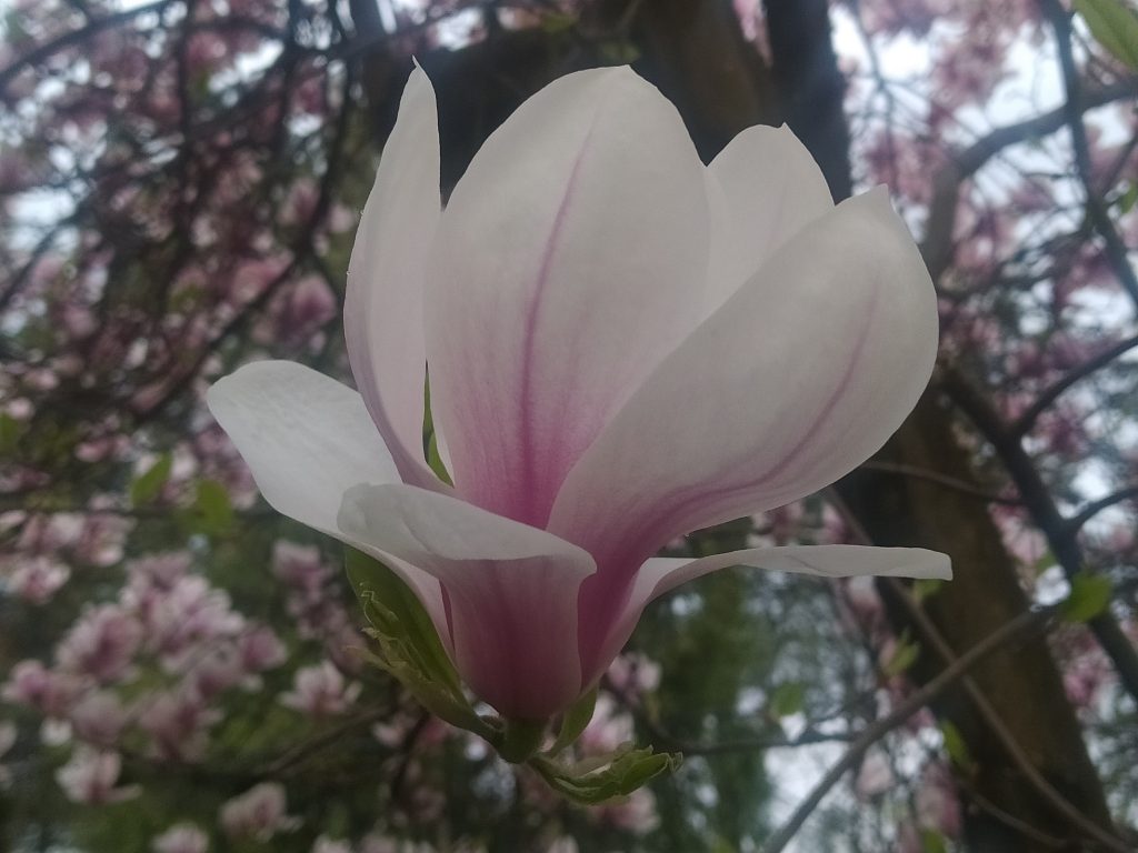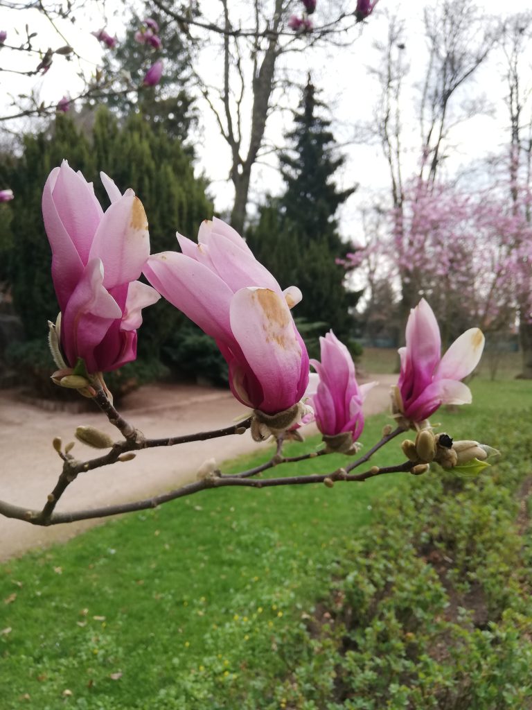 Původ: hybrid vzniklý v r. 1820 křížením druhů Magnolia denudata a Magnolia liliiflora