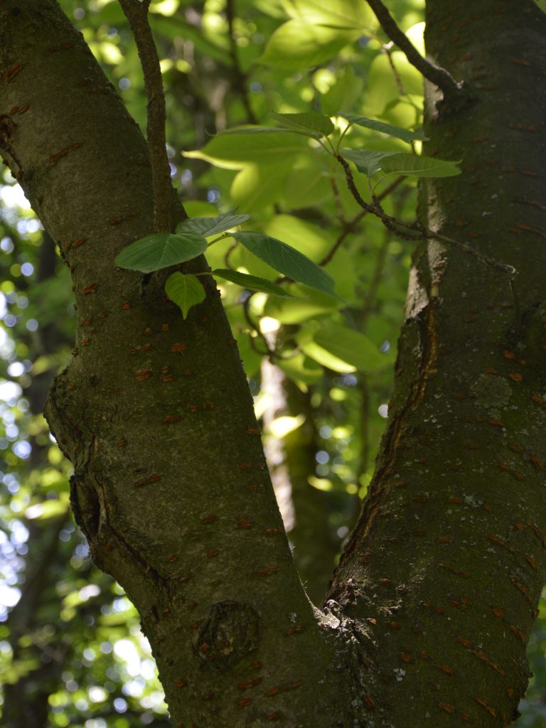 Habitus: Nízký strom (vysoký 3–8 m) či keř, jehož větve vyrůstají šikmo vzhůru. Kůru má tmavě hnědou a lesklou.