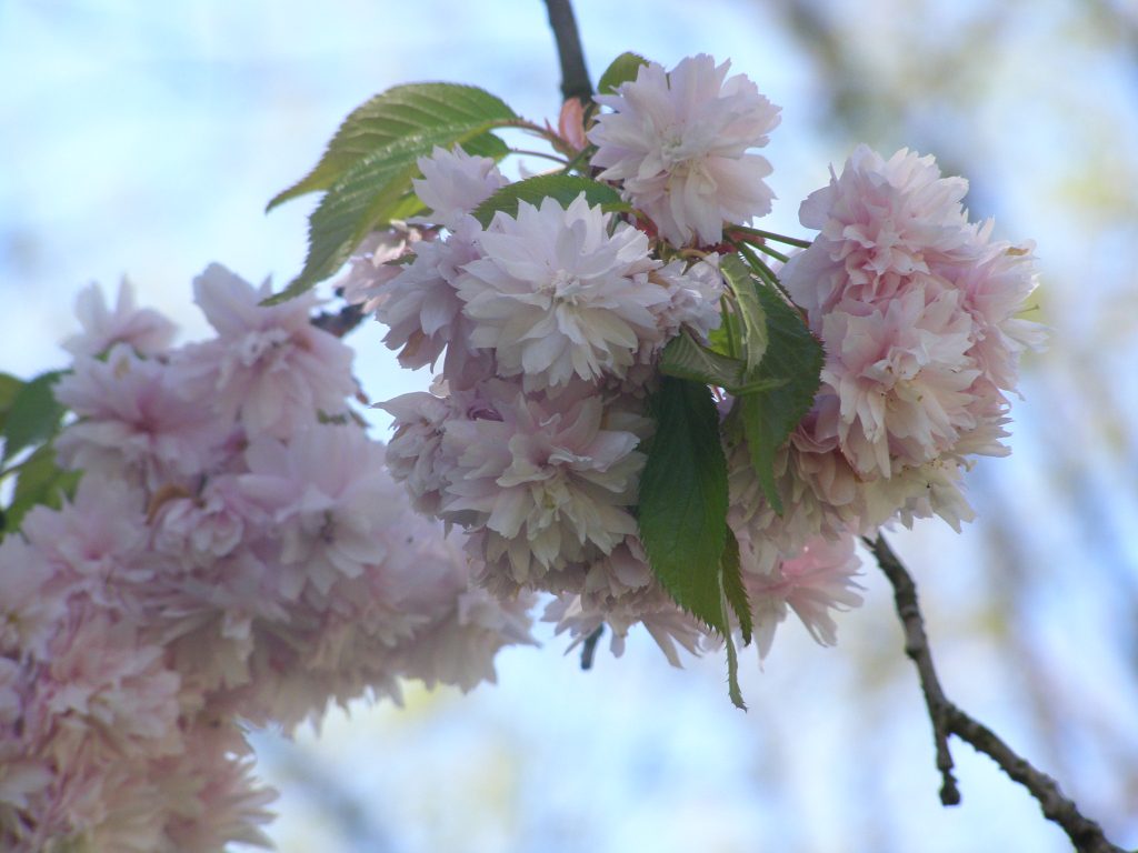 Květ, plod: V dubnu či květnu, kdy se listy teprve začínají rozvíjet, je celá dřevina obalena střapatými, bílými až narůžovělými květy, které jsou uspořádány ve skupinkách po 3–5. Ne vždy dozrávají v tmavě červené až černé peckovice o velikosti zhruba 0,5 cm.